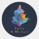 Sticker Rond Arbre de Noël moderne arc-en-ciel personnalisé ble