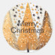 Arbres de Noël dorés Flammes de neige brillantes Fêtes Sticker rond classique. Unique, beau, design élégant. Facile à personnaliser. Le style de police, la taille et les couleurs peuvent être modifiés. Des éléments correspondants sont disponibles.