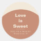 Cet arc en terre cuite l'amour mariage formel est un sticker rond classique doux est parfait pour un mariage rustique. Le design comporte une belle police dans un arrière - plan en terre cuite pour embellir votre événement.