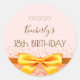 Un autocollant pour une fête de 18e anniversaire girly et glamour. Un élégant arrière - plan rose vif et élégant avec un élégant arc doré. Le texte : Le nom est écrit en marron avec un grand script de style à la main moderne. Modèle pour le nom, âge 18 et une date. Parfait comme scellés d'enveloppe, étiquettes de faveur ou comme rappel Enregistrer la date pour vos invités.
