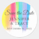 Beau mariage arc-en-ciel Enregistrer l'autocollant Date avec de jolies touches de peinture artistique pleine de couleur vive. Ces autocollants colorés sont parfaits pour un couple artistique ou un faire-part de mariage gay et lesbien.