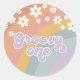 Autocollants d'anniversaire super One Retro Rainbow avec marguerites.