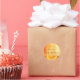Un autocollant pour une fête de 50e anniversaire girly et glamour. Un faux arrière - plan rustique à l'allure d'or avec des confettis et un arc. Le texte : Le nom est écrit en marron avec un grand script de style à la main moderne. Modèle pour le nom, âge 50 et une date. Parfait comme scellés d'enveloppe, étiquettes de faveur ou comme rappel Enregistrer la date pour vos invités.