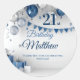 Un design élégant pour un autocollant de fête du 21e anniversaire. Le design est composé de ballons bleus et argentés et d'un pennant avec du texte bleu et est la façon parfaite de décorer vos sacs de faveur pour une fête de 21ème anniversaire ou de 21ème anniversaire. Tout le texte peut être modifié au besoin.