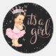 Sticker Rond Argent rose C'est une fille princesse Baby shower