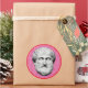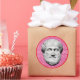Aristotle sticker Greek philosopher sculpture face on a pink greek key pattern for anyone who loves Greece and Greek Philosophy, Ancient Greece and Classics
