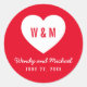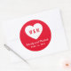 Mariage monogramme moderne Enregistrer la date autocollant rond avec un coeur blanc. Cet autocollant polyvalent a une couleur arrière - plan modifiable (changez-la à votre convenance) et changez la couleur de police pour qu'elle corresponde bien à celle à laquelle vous pouvez accéder en cliquant sur le bouton "personnaliser". Personnalisez-le en remplaçant le texte de l'espace réservé par vos détails. Pour plus d'options comme changer la police et sa taille, cliquez sur le bouton "Personnaliser". *Veuillez noter que le filigrane Zazzle qui apparaît dans l'aperçu du zoom n'apparaîtra PAS sur le produit imprimé final. © Bois de rose et agrumes