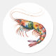 Illustration d'aquarelle vibrante d'une crevette rendue de manière moderne et stylisée contre un arrière - plan blanc pur. Le corps de la crevette est peint avec un dégradé de couleurs, dont l'orange, le rouge, le jaune, le vert et le violet, créant un effet arc-en-ciel sur sa coquille segmentée. La crevette a de longues antennes qui coulent dans une couleur brune chaude qui se bouclent à l'extrémité. Les jambes et la queue sont détaillées avec des traits fins de brosse montrant la texture et le mouvement. L'oeil des crevettes est noir et détaillé, et ses parties de bouche sont rendues dans des tons oranges vifs. L'illustration a une qualité artistique et lâche, avec des traits de brosse visibles et des textures aquarelles, particulièrement dans les transitions de couleur et les réflexions sur la coque de la crevette.
