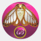 STICKER ROND ART NOUVEAU MOTH FEMME ROSE FUCHSIA GEM MONOGRAS