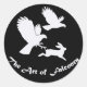 La silhouette de deux Harris Hawks pourchassant un lapin avec les mots L'Art de Falconry ci-dessous.