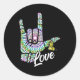 Sticker Rond ASL Love You Main Sign Language Butterfly Deaf Awa