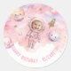 Extérieur fille Astronaut Pink photo anniversaire Classic Round Sticker Objets correspondants disponibles.