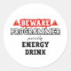 Sticker Rond Attention : Programmeur Alimenté Par Une Boisson D