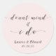 Un beignet mariage sur mesure favorise les autocollants/étiquettes avec "Donut Mind If I Do" en calligraphie manuelle élégante et moderne. Personnalisez avec les noms des mariés et des mariés et la date du mariage. Parfait pour décorer des sacs et des boîtes à beignes mariages.