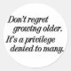 Ne regrette pas de vieillir. C'est un privilège refusé à beaucoup. Inconnu