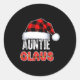 Sticker Rond Auntie Claus Buffalo Plaid Red Santa Hat Christmas