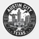 Sticker Rond Austin City Texas Skyline Retro Black & White Art
