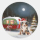 Sticker Rond Australian Shepherd Caravan Christmas Adventure