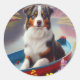 Sticker Rond Australian Shepherd on Paddle : Une aventure Pitto