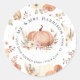 Étiquette d'adresse de retour peinte à l'aquarelle avec fleurs d'automne, citrouilles, feuilles d'automne et gourdes, Autocollant Rond Classique. Élégante étiquette d'adresse de retour qui peut également servir de sceau pour enveloppe, ajoutant une touche finale élégante à votre présentation d'invitation. Typographie script écrite à la main avec le nom, l'adresse et le monogramme de l'expéditeur sur un cadre rond simple et moderne. Couleurs chaudes d'automne : orange brûlé, terre cuite, marron, vert atténué et ivoire. Peint et conçu graphiquement par l'artiste et designer licenciée internationale Audrey Jeanne Roberts, copyright.
