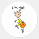 Un joueur de basketball figuratif fait monter la balle sur le terrain avec des T-shirts, des cartes, des tasses, des mousepads, et d'autres cadeaux et vêtements de joueur de basketball. Le texte dit : "J'ai chaud !"