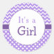 Sticker Rond Baby shower à points pourpre Chevron & Polkas