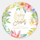 Sticker Rond Baby shower | Aquarelle tropicale Or