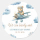 Sticker Rond Baby Shower Avion Ours Mignon Bleu Garçon