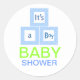 Un design mignon avec des blocs colorés qui disent que c'est un garçon ! Les mots "baby shower" en caractères gras et brillants.