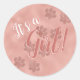 Sticker Rond Baby shower c'est une faveur rose d'empreintes de