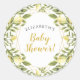 Autocollant Rond Classique Baby Shower Citron Feuillage