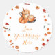 Un bébé brasse Citrouille épice Baby shower café Aimer Votre message Ici Sticker rond classique Toute la formulation peut être customisée