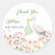 Sticker Rond Baby shower de fleurs printanières de cigogne spéc