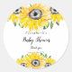 Sticker Rond Baby shower de tournesol Script Moderne Floral Chi