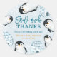 Envoyez des sourires glacés avec nos autocollants 'Snow Many Thanks, mettant en vedette une troupe de pingouins joyeux qui frolent dans un pays merveilleux enneigé avec des igloos et des flocons de neige sur un arrière - plan bleu glacé. Une jolie illustration de l'aquarelle arctique peinte à la main