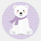 Sticker rond Baby shower d'ours polaire violet classique