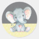 Sticker rond Eléphant Baby shower jaune et gris classique