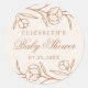 Élégants autocollants de baby shower floral avec des fleurs en cuivre esquissées et feuilles avec un arrière - plan d'amande. Personnalisez les autocollants à baby shower floral avec votre nom et la date. Les autocollants à fleurs sont parfaits pour sceller les sacs de baby shower, les enveloppes d'invitation, et plus encore! Conçu pour coordonner avec notre collection Sketched Floral.