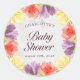 Sticker Rond Baby shower en marbre aux fleurs vives