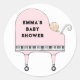 Autocollants cadeaux baby showers créatifs, fête préférée étiquettes et enveloppes avec poussette de piano à queue rose et jeune fille.