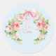 Sticker Rond Baby shower Floral Crest Regency Bow rose Bleu