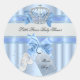 Sticker Rond Baby shower Garçon Bleu Petit Prince Couronne 3a
