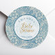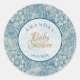 Sticker Rond Baby shower Garçon Bleu Script Floral Marigold Mor
