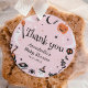 Ajoutez une touche sucrée à votre baby shower d'halloween avec cet autocollant de remerciement personnalisé de fantôme rose. Parfait pour les idées de baby shower à thème halloween, cet autocollant rond éffrayant correspond aux idées de baby shower halloween rose et pastel. Idéal pour les petites idées de baby shower de boo et les thèmes "un petit boo est presque dû", il convient aux idées de baby shower éffrayant, des idées de baby shower sorcière, et bébé est en train de brasser des idées de douche. Un choix mignon pour une douche à brasser bébé, un bébé brasse des idées de baby shower, et plus encore!