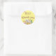 Sticker rond classique pour maman et bébé Baby shower neutre avec mignonette douce et souriante maman canard avec bébés, fleurs roses et beiges arrondies, verdure et coeurs avec arrière - plan jaune pastel et minimaliste, design simple. Aquarelle animaux maman avec bébé est une façon douce pour les invités invitations à un Baby shower mignon neutre genre. Correspondant produits disponibles, vous pouvez également me demander en massage pour un article nécessaire que je peux créer pour vous.