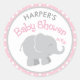 Sticker Rond Baby shower moderne rose et gris éléphant fille