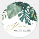 Sticker Rond Baby shower moderne Tropical Monstera Green Foliag