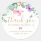 Beau Baby shower à thème Papillon Favor Sticker Étiquette avec papillons rose, violet, orange et vert menthe niché au milieu d'une bordure verte d'eucalyptus dispose d'un script de calligraphie moderne et tendance et "merci de célébrer avec nous" texte avec nom personnalisé et date de baby shower. Personnalisez vos champs de texte ou utilisez l'éditeur de conception pour déplacer et supprimer les papillons et modifier les polices et les couleurs de texte. Découvrez la collection de magasins Paper Grape Zazzle Designer pour coordonner les décorations et les faveurs des Baby showers papillons.