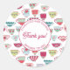 Un pastel moderne prend sur une jolie porcelaine d'os vintage ou des tasses à thé en porcelaine. Superbe coordination autocollants avec texte personnalisé pour correspondre à votre célébration baby shower. Art original de Nic Squirrell.