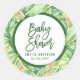 Autocollant rond de baby shower tropical avec feuilles d'aquarelle verte tropicale avec le mot "Baby shower" en vert. Il est parfait pour un baby shower à thème neutre pour les femmes ou tropical. Consultez les éléments correspondants comme les invitations et les timbres ici https://www.zazzle.com/collections/green_watercolor_leaves_tropical_collection-119860212866787344?rf=238364477188679314 Personnalisez-le avec vos détails en remplaçant le texte de l'espace réservé. Pour plus d'options, cliquez sur le bouton "Personnaliser". *Veuillez noter que le filigrane Zazzle qui apparaît dans l'aperçu du zoom n'apparaîtra PAS sur le produit imprimé final. © Bois de rose et agrumes